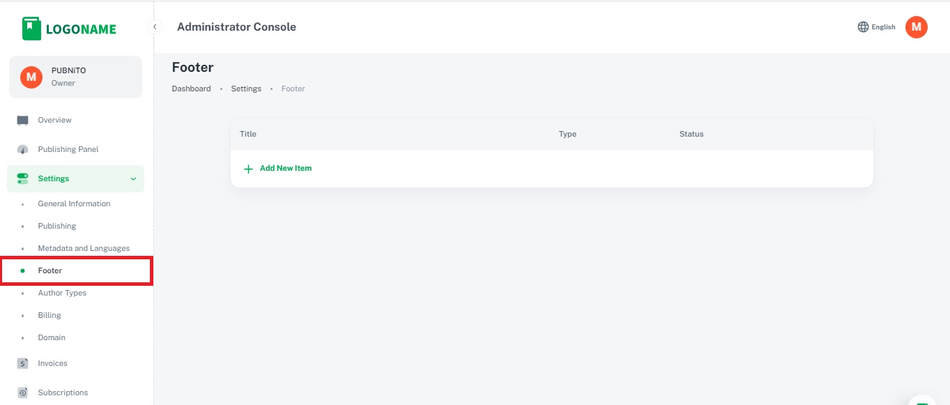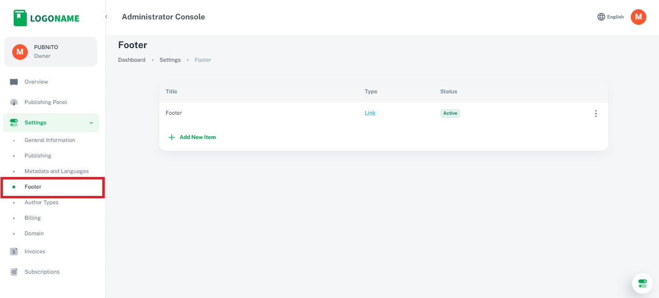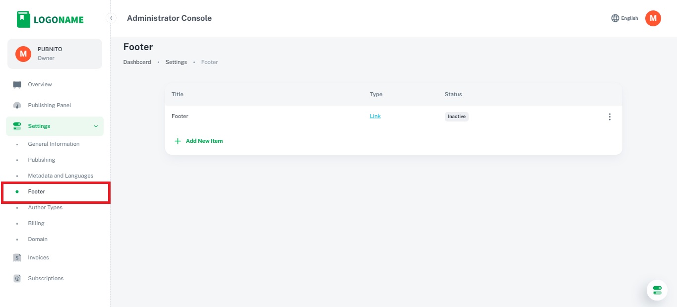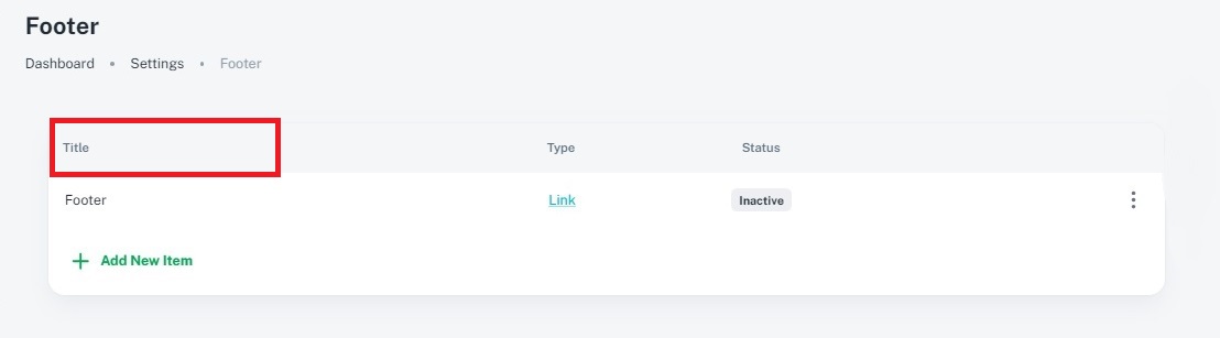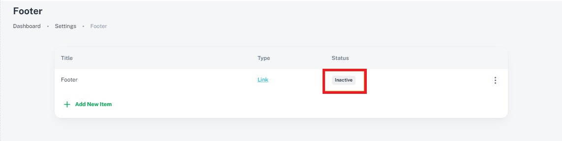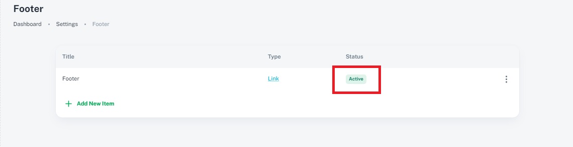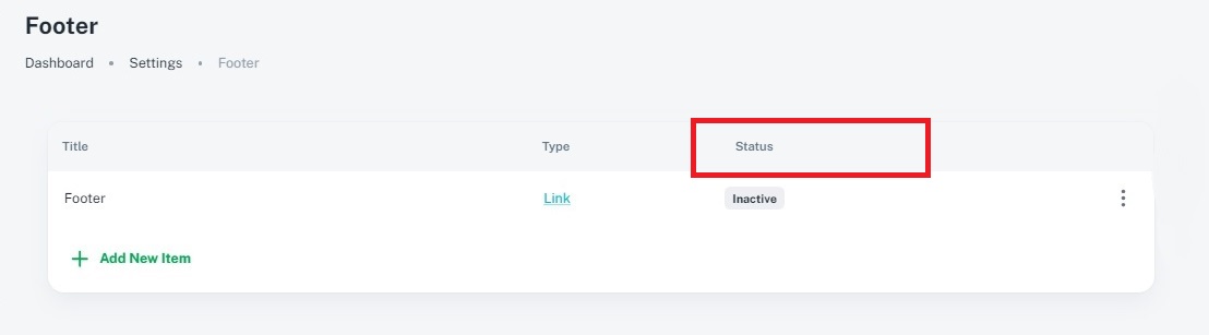 3. Status: Visibility Control: The status of a footer item indicates whether it is active