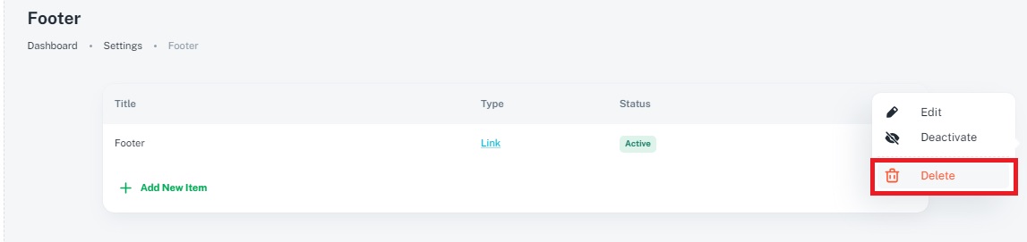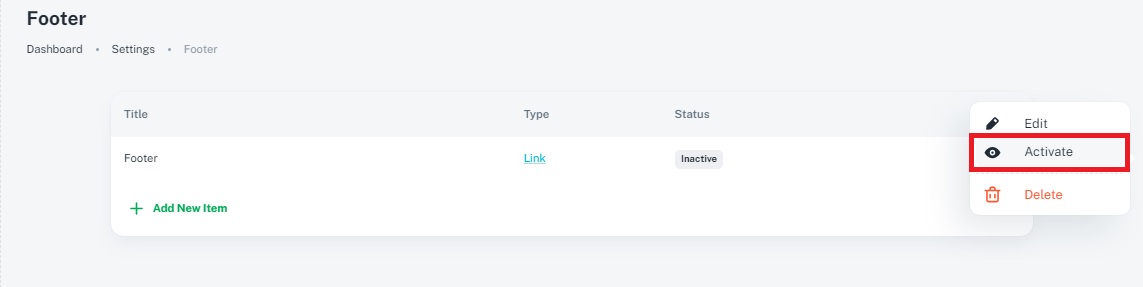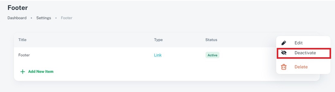 5. How do I deactivate or activate footer items