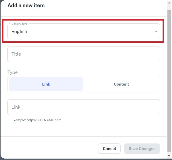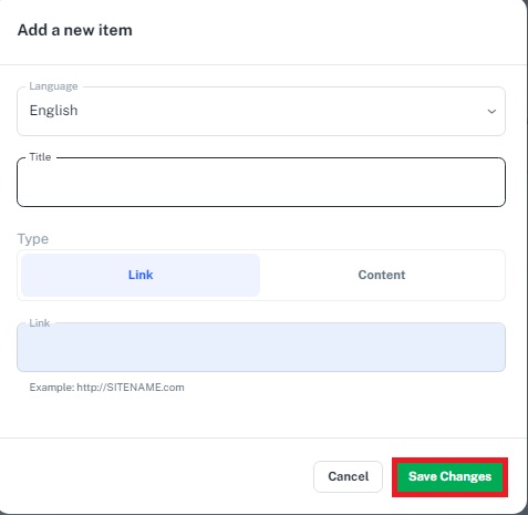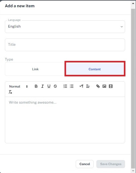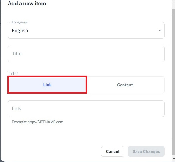 Next, decide whether the new item will be a Link or Content.