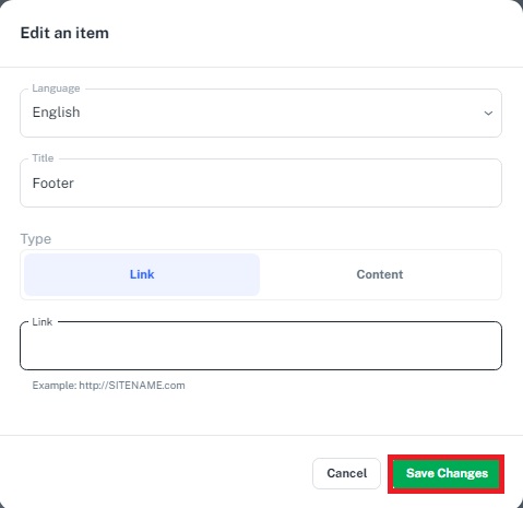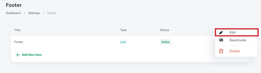 4. How can I edit existing footer items via the Admin