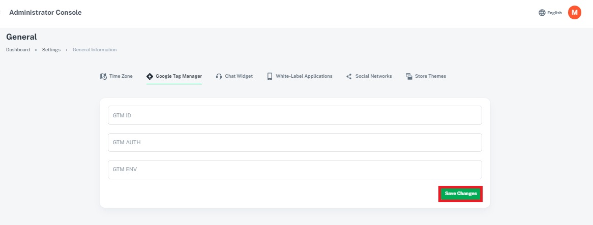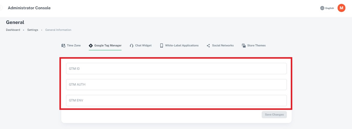 fields with your GTM ID, GTM AUTH, and GTM ENV.