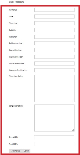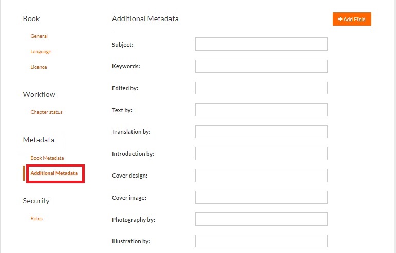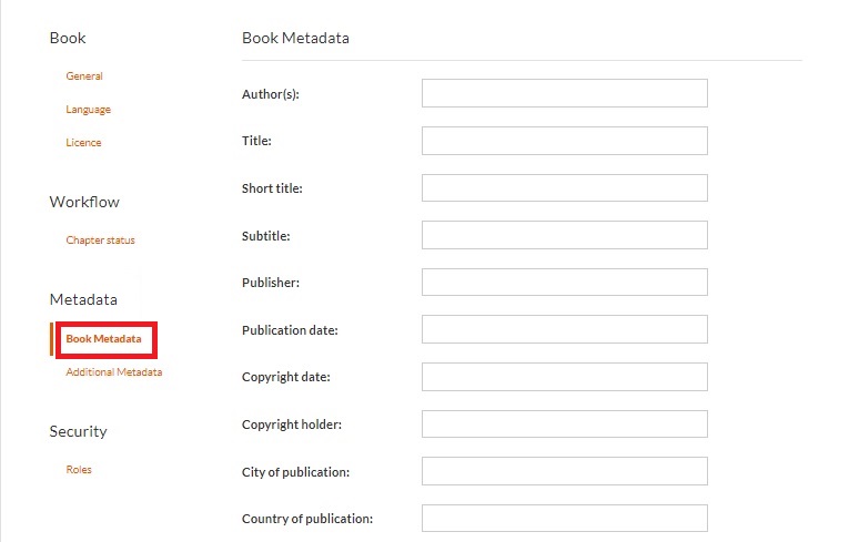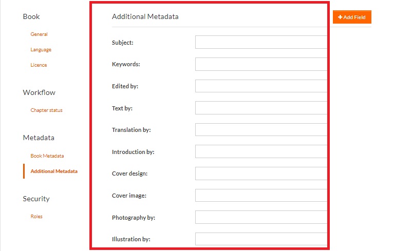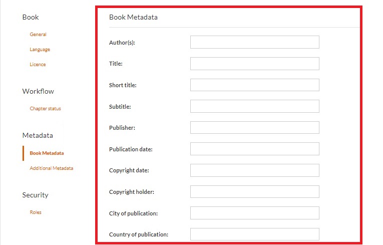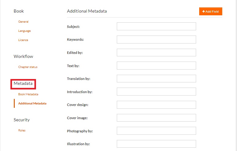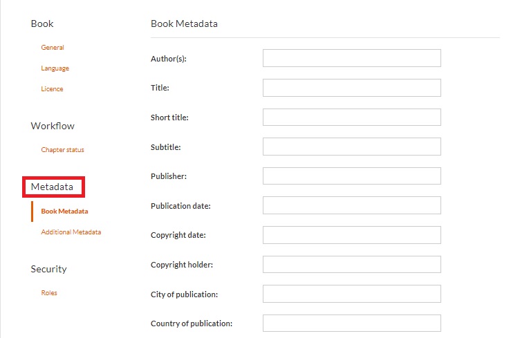Metadata Fields: The Metadata Fields section provides essential details about the book. Each field serves a specific purpose to comprehensively describe and categorize the publication.