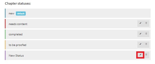2. To edit, click on the Edit icon of the status you want to change. Enter the new name and save it.