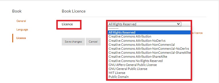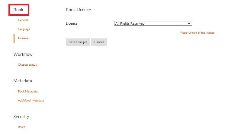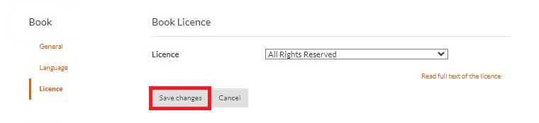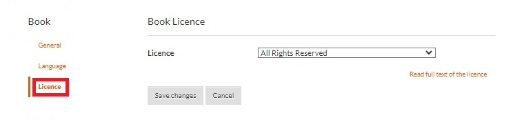 The License tab helps you choose the right copyright license for your book. To manage licenses: