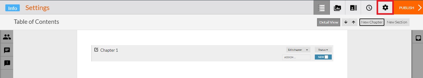 To access Book Settings, open your book in the Studio and click on the Settings icon at the top right. You will see 4 sections here: