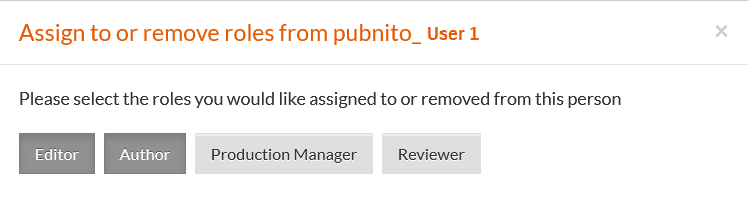 5. Click on a role to either remove it (a message will confirm the removal) or to assign it (a message will confirm the new role).