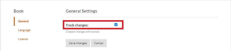 The General tab lets you track changes in chapters. To use this: