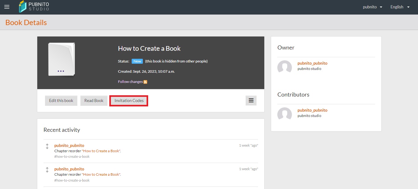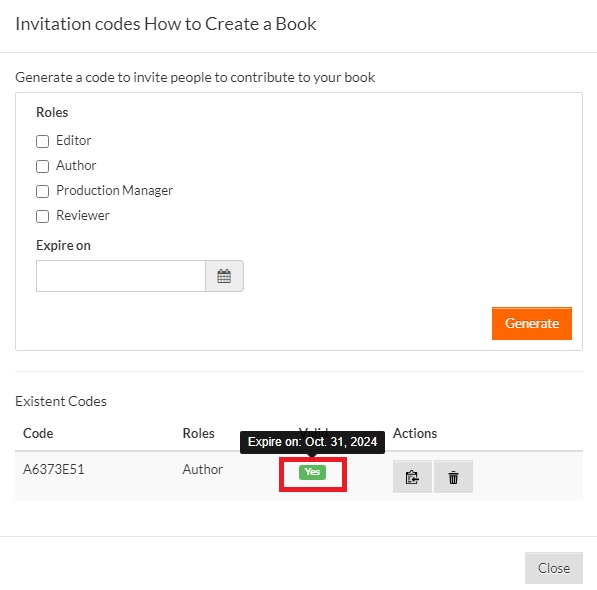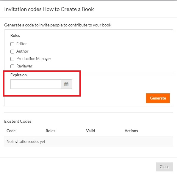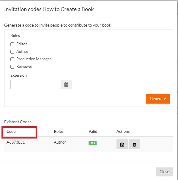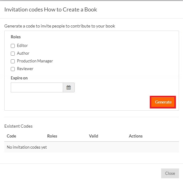 As a book owner or collaborator with senior rights, generate an Invitation Code