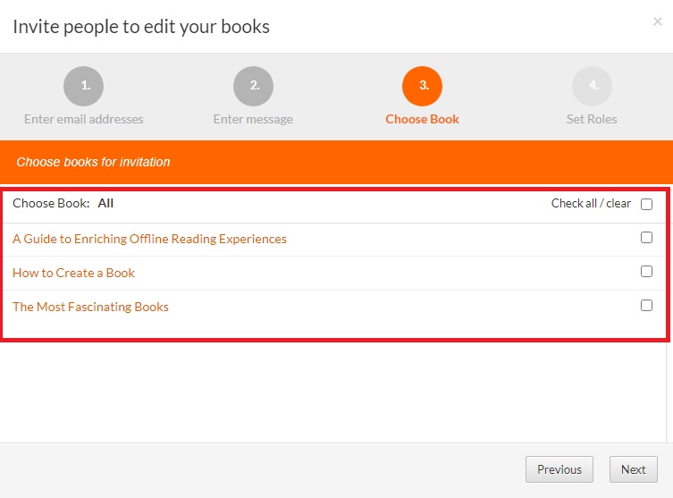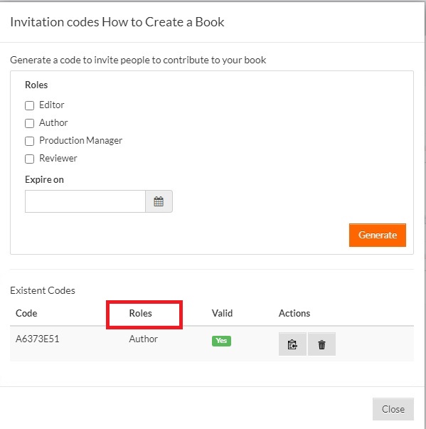 be generated for each book. As a book owner or a collaborator with senior rights,