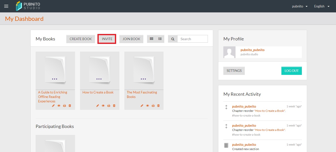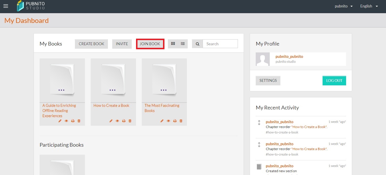 Dashboard, click "Join Book," enter the Invitation Code provided, and