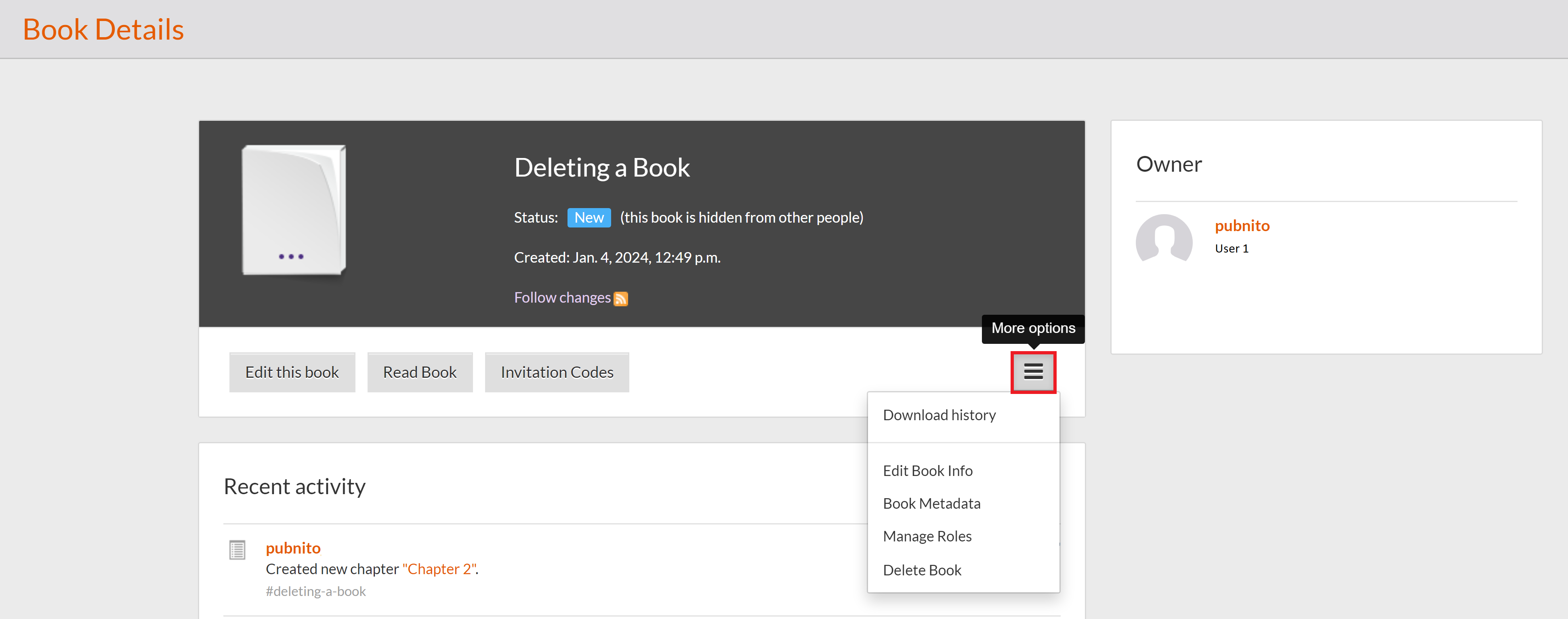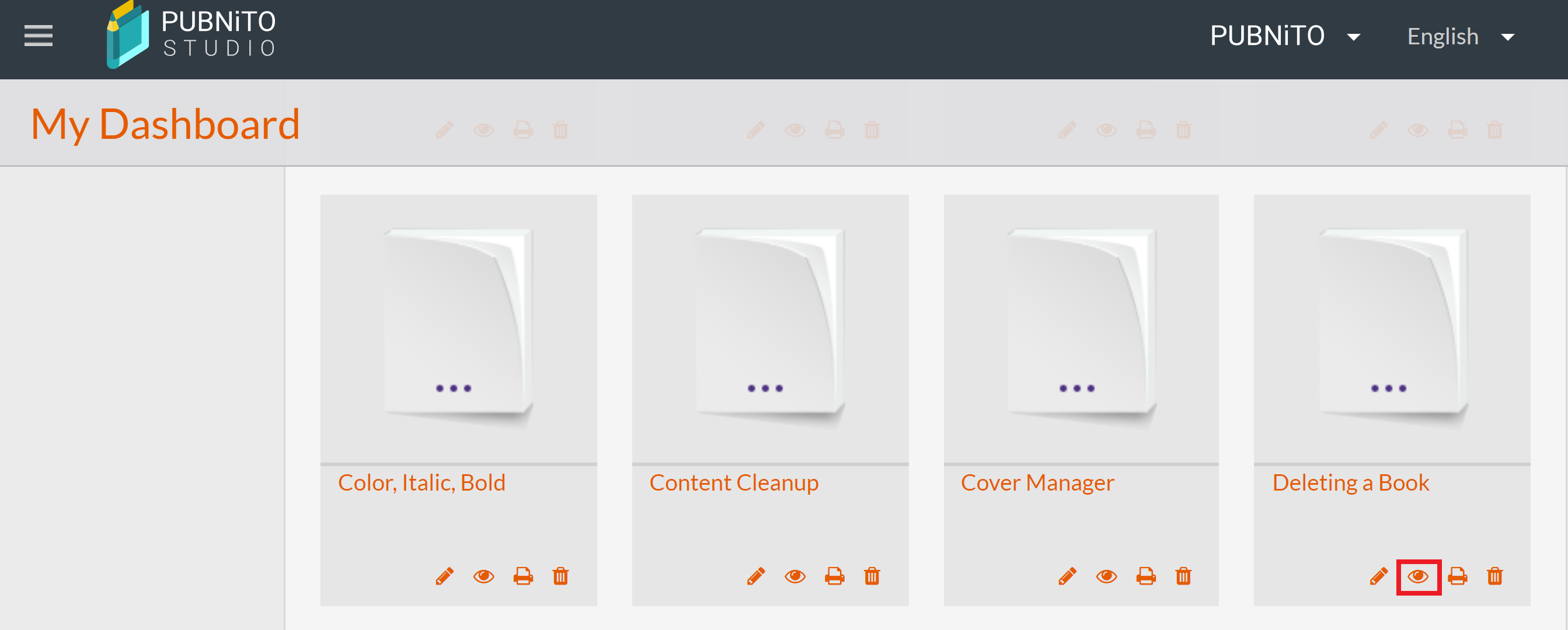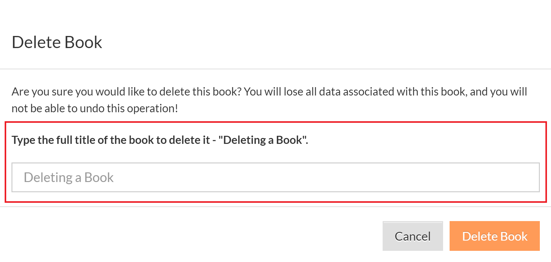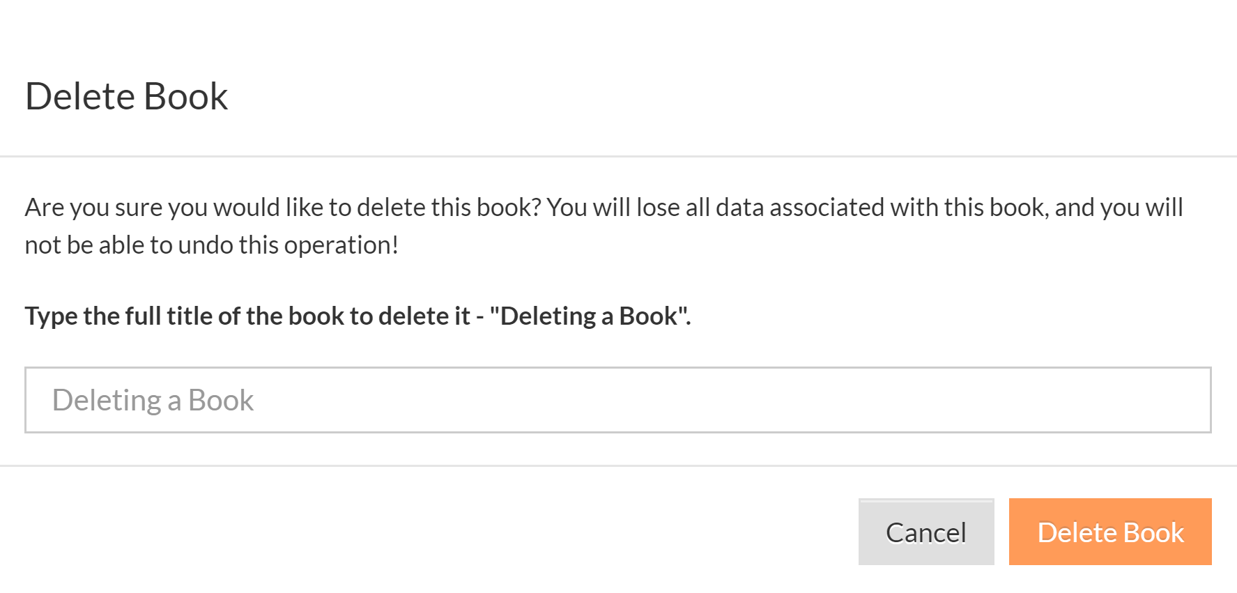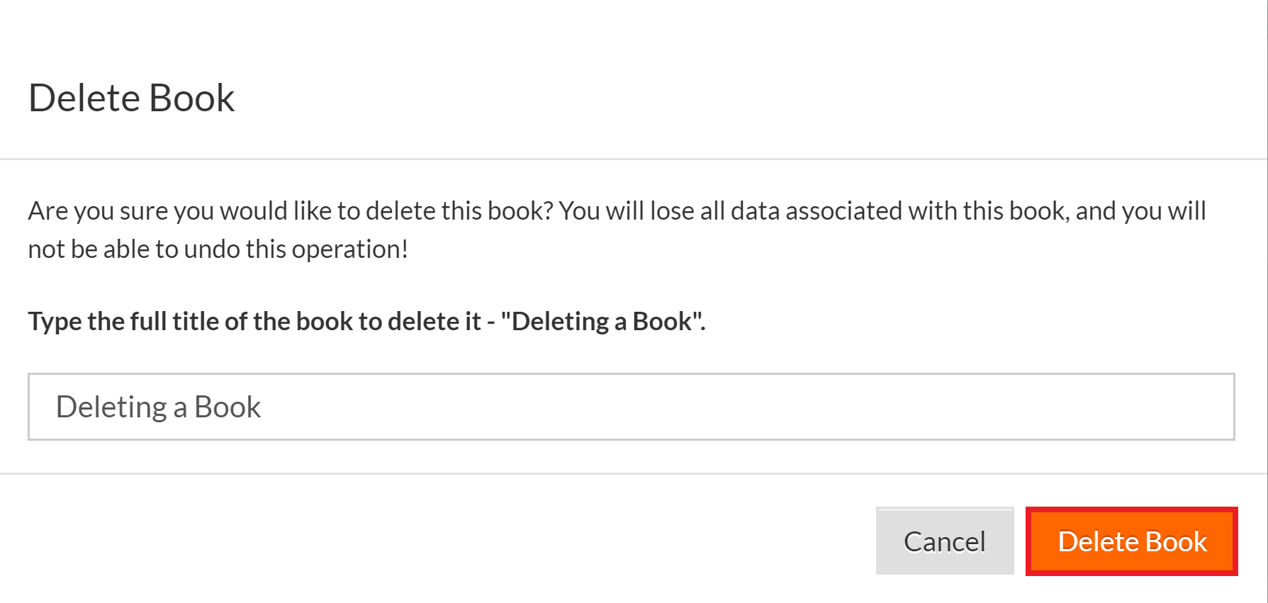 Warning: Deleting a book in the studio is irreversible. All data related to the book