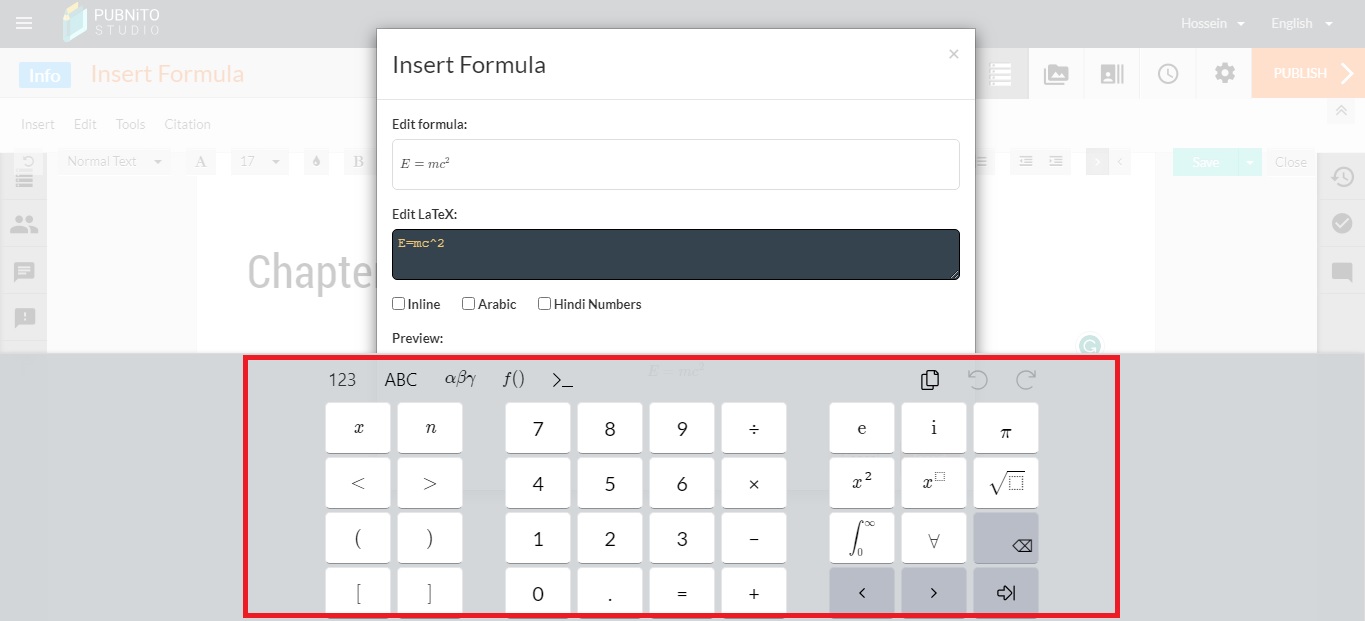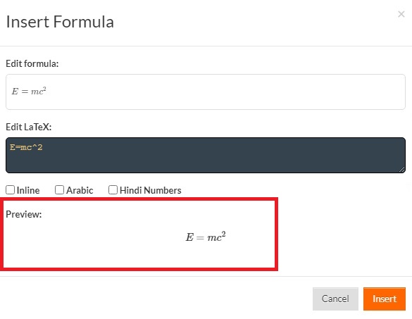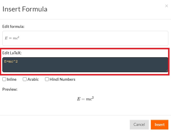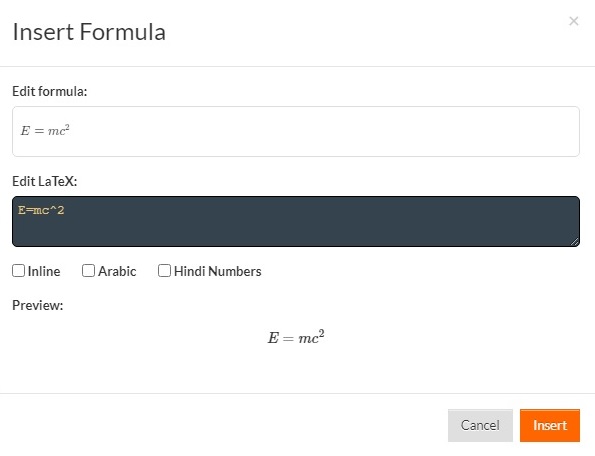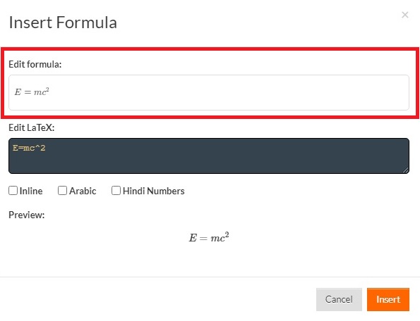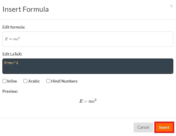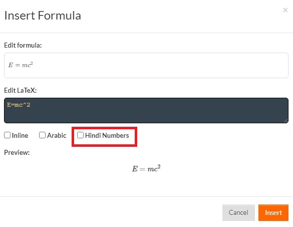 Hindi: By selecting this option, any English numbers within the formula will be automatically converted into Hindi numerals, making it easy to include them in your math expressions or equations.