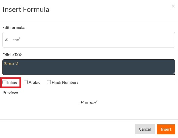 Inline: The Inline option in the Authoring Studio makes it easy to add math expressions and formulas right into your text. It helps you put in complicated math easily, so your document looks smooth and professional.