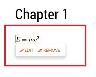 Select the formula you wish to work with. You will see two options: Edit and Remove. Clicking Edit will open the formula panel, enabling you to make changes, while clicking Remove will remove the formula from the text.