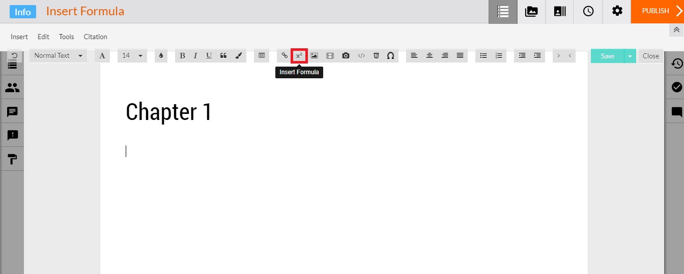 Next, click the Insert Formula icon in the editing toolbar. This will open the Edit Formula Modal.