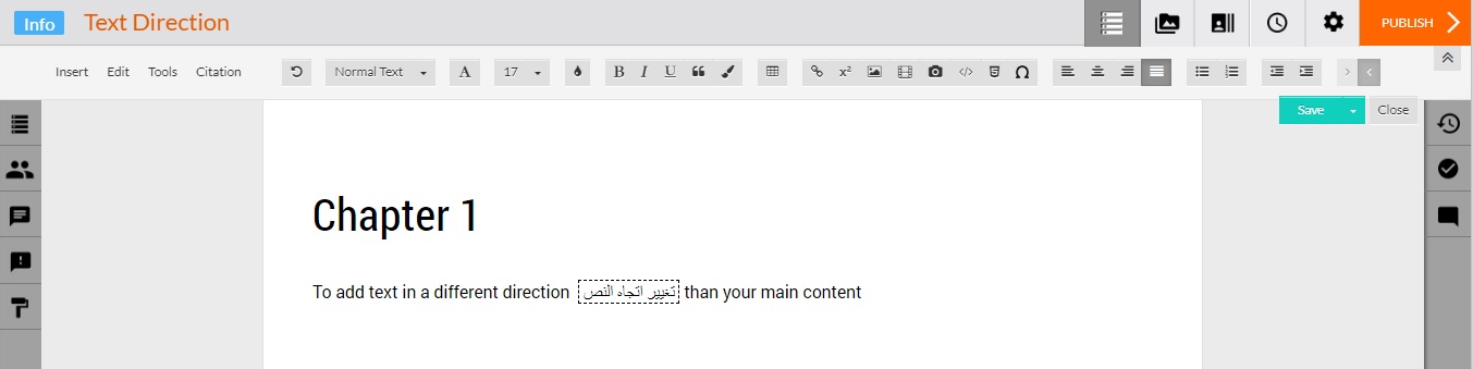main content, use the Insert RTL/LTR feature. This lets you easily add