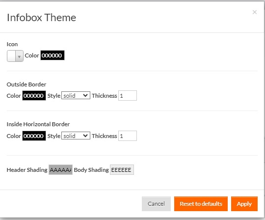 Infobox Theme modal lets you change how your infobox looks. You can choose