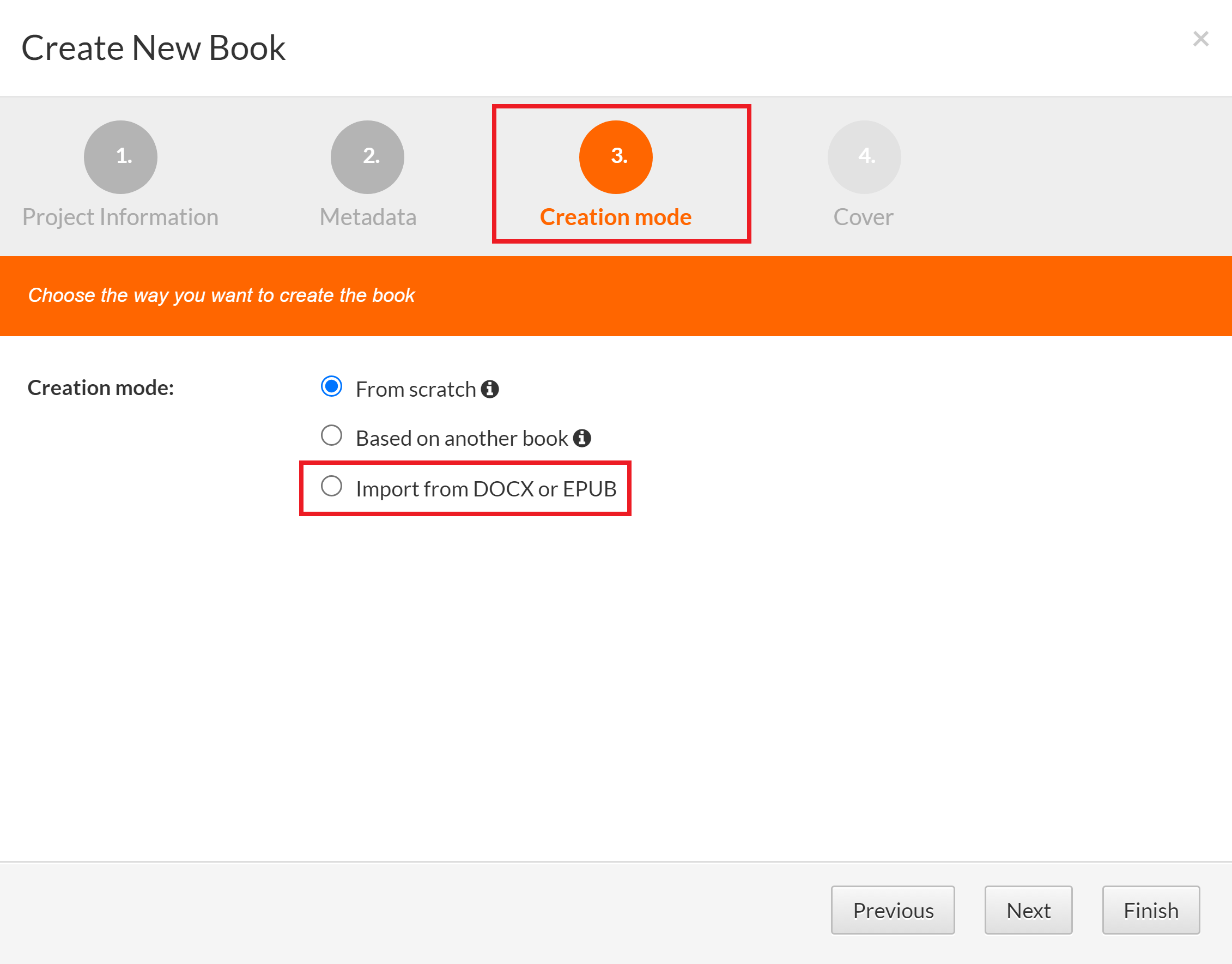 step of the wizard, select Import from DOCX or EPUB. This lets you