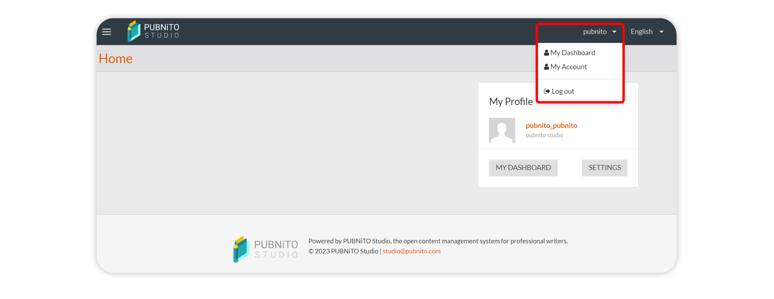 On the left side of the menu, you will find links to the Home page and My Dashboard.