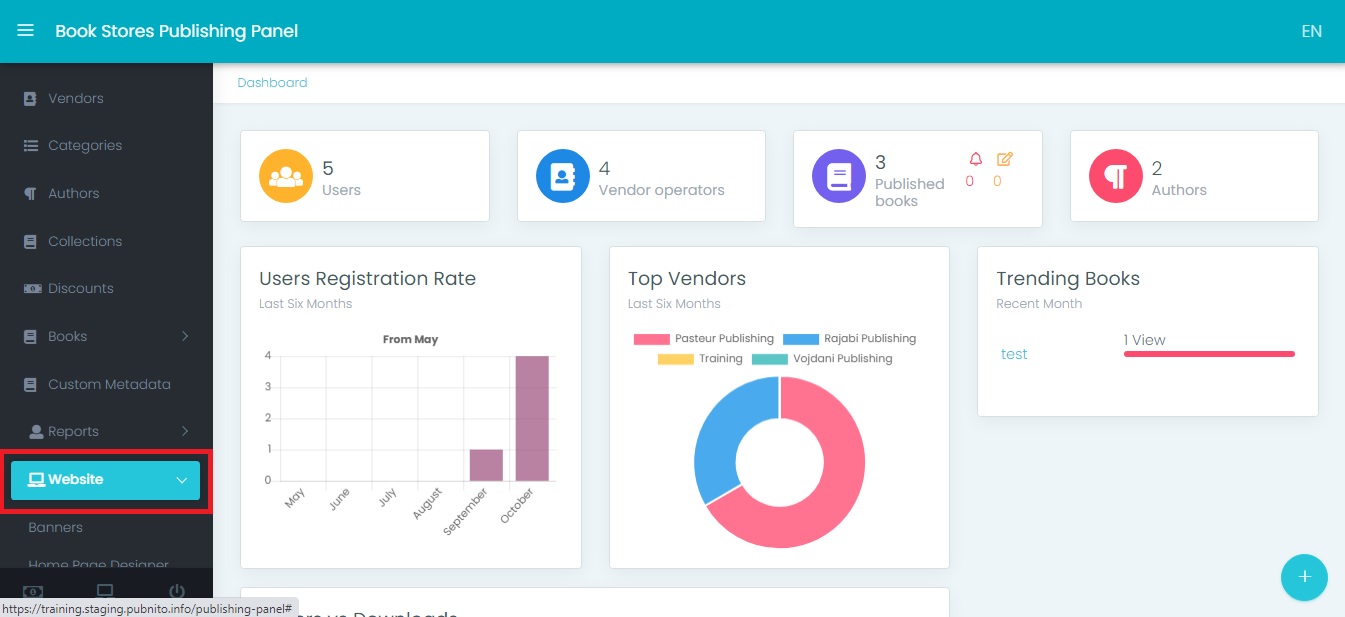 1. In the Bookstore Publishing Panel, go to the Website Menu.