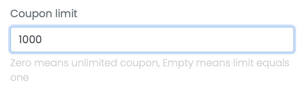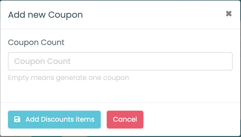 In our example, we have only added one coupon, which can be applied 1000 times. However, we may add to this and create more of the same coupon.