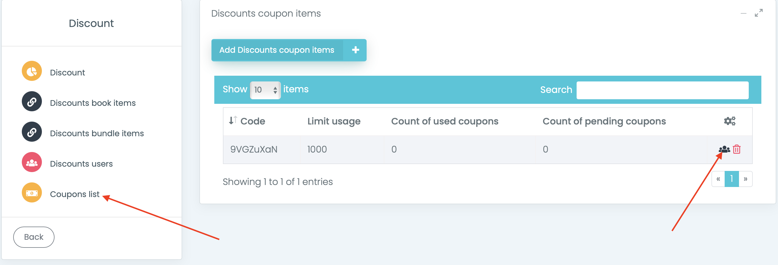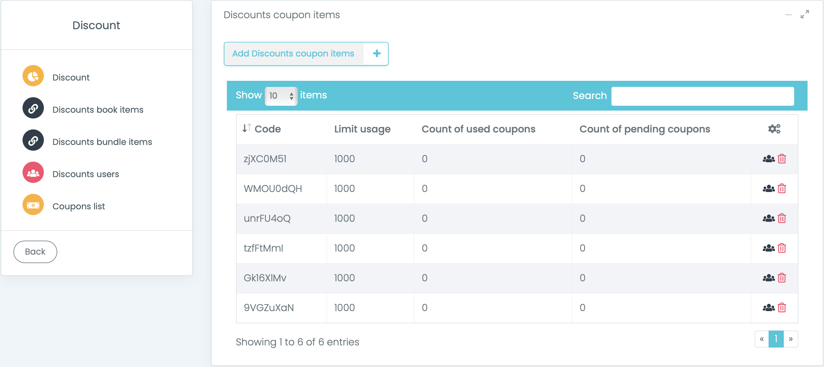 This is the final step. Here you can see list of coupons that you have created, add to them, and copy to distribute them.