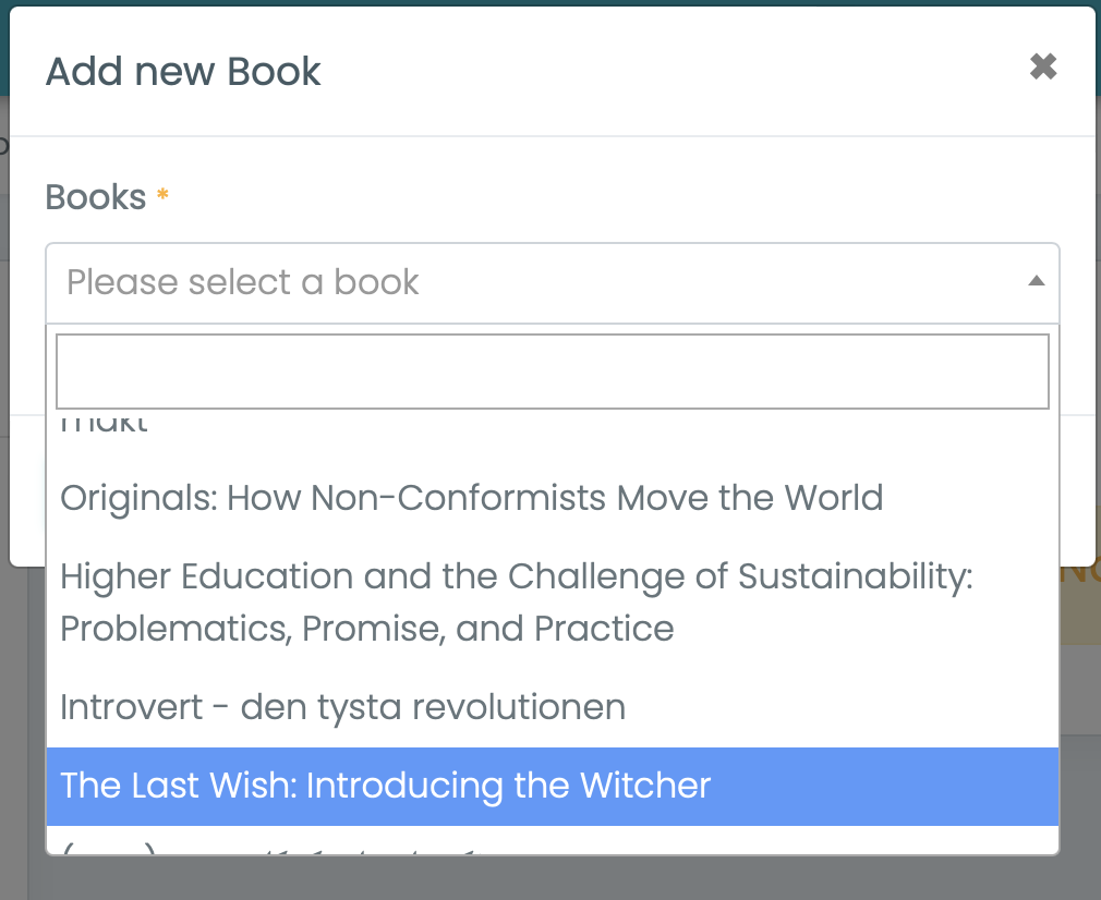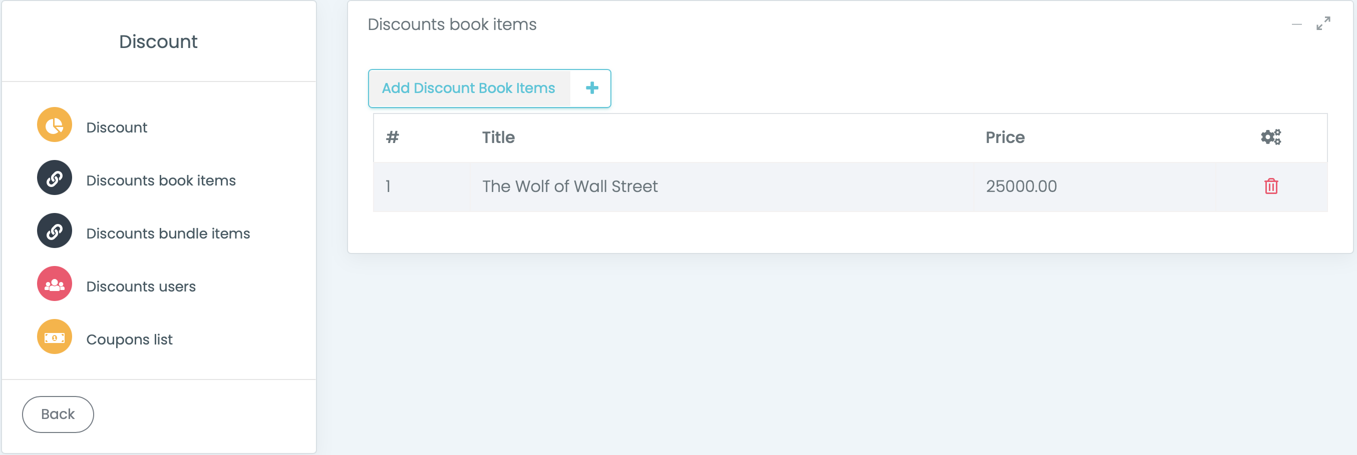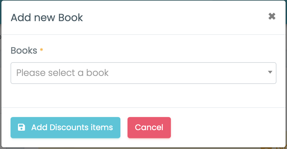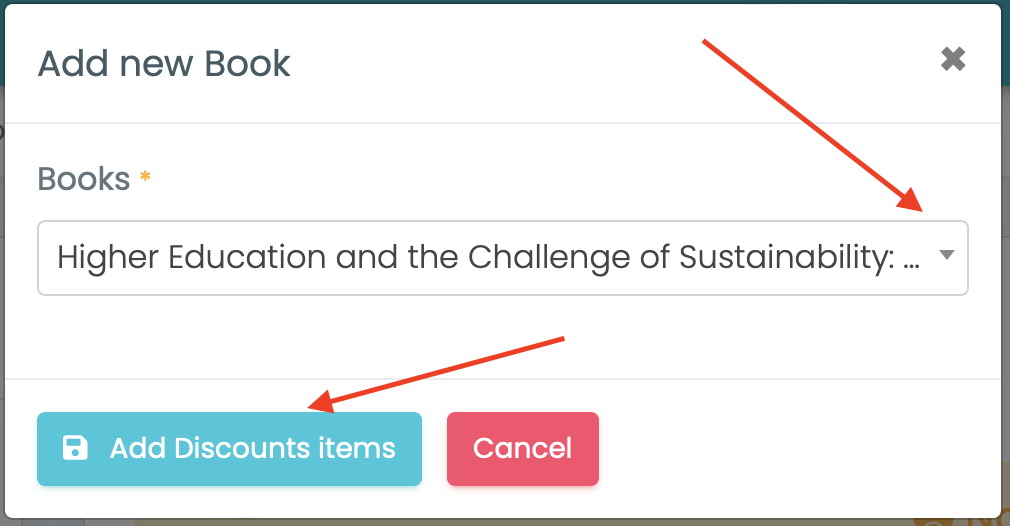 This will open the following windows which lets you pick a book, and add it as a discounted item.