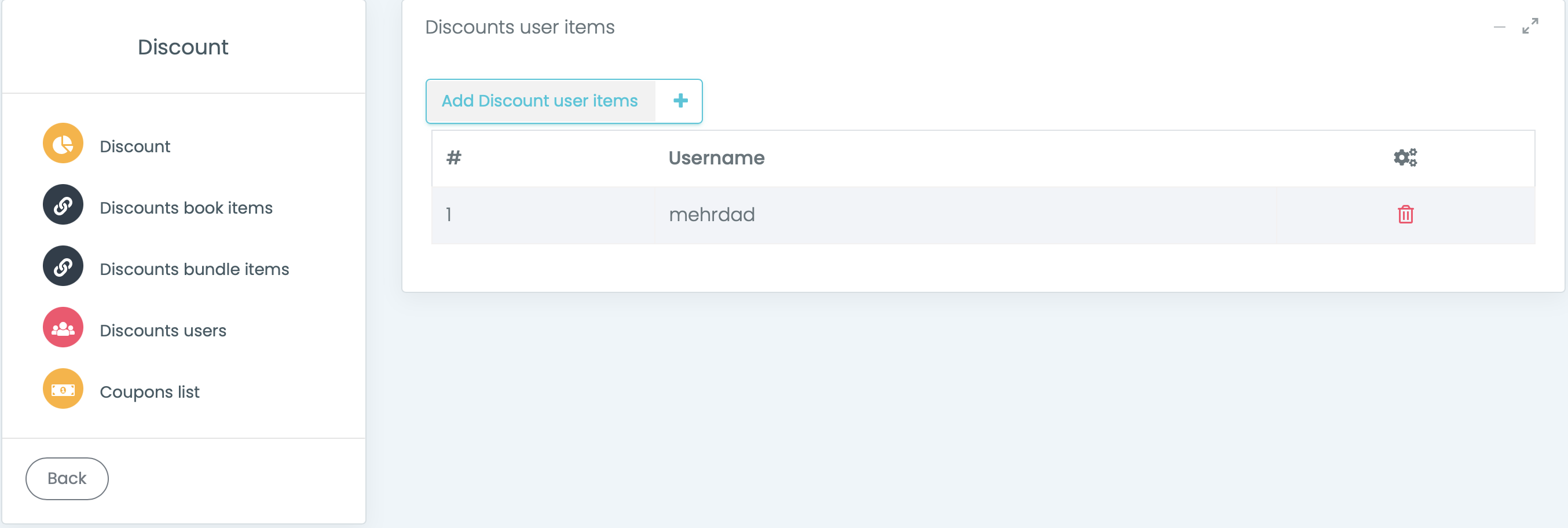 You can decide whether a discount is for all users, or certain users. For example, you may wish to offer a textbook to only students of a specific grade in a high school. You can list these students as pre-determined users of the discount.