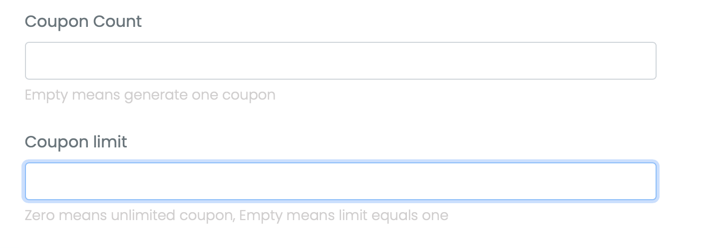 Last, you will define how many coupons to be created, and how many times each coupon can be used.