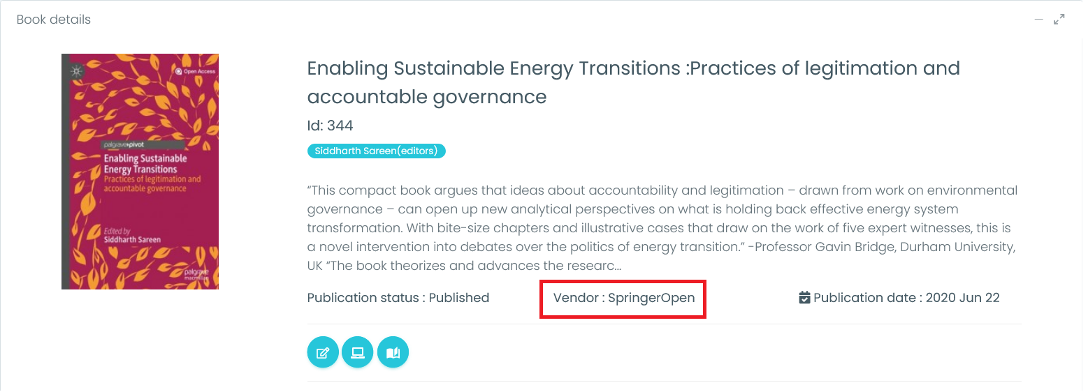 vendor of the book is shown in the vendor section. A publisher, an individual