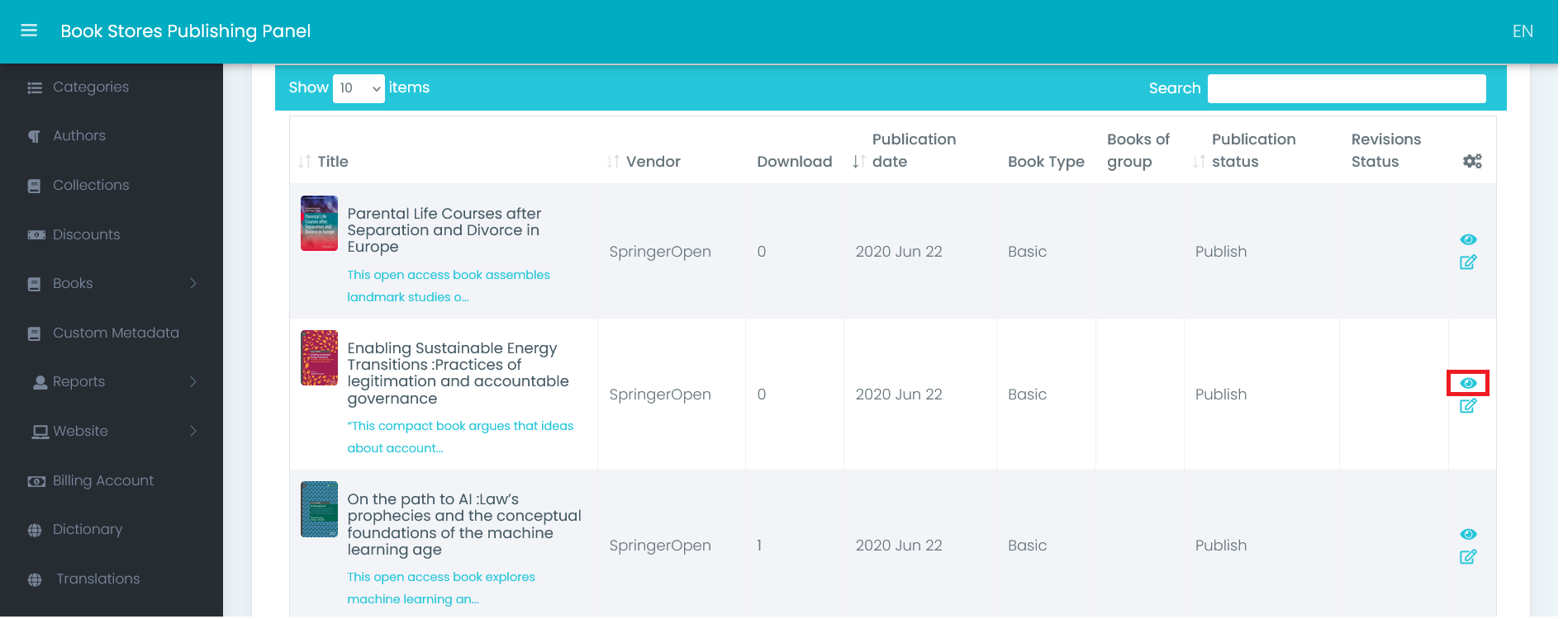 The Book Detail Page in your Publishing Panel offers a thorough and in-depth look at a specific book in your