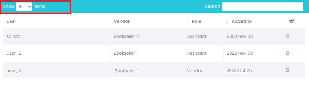 Show Items: You can choose to display 10, 25, 50, or 100 items at once,