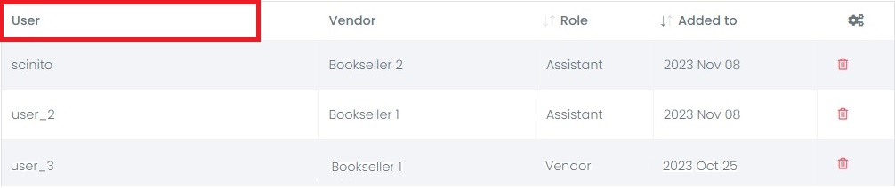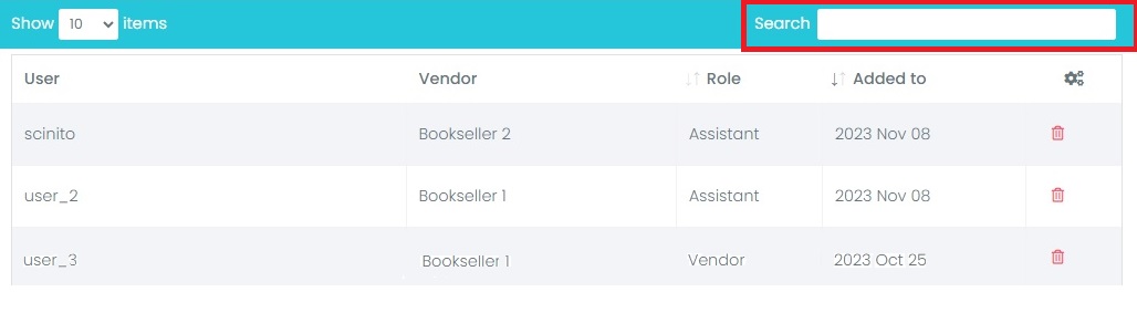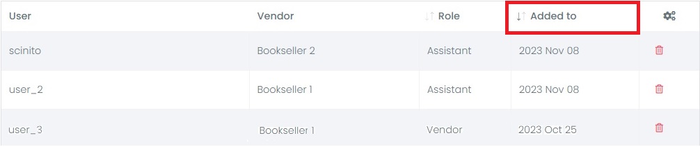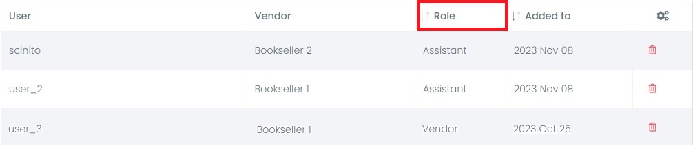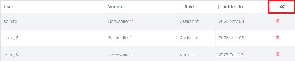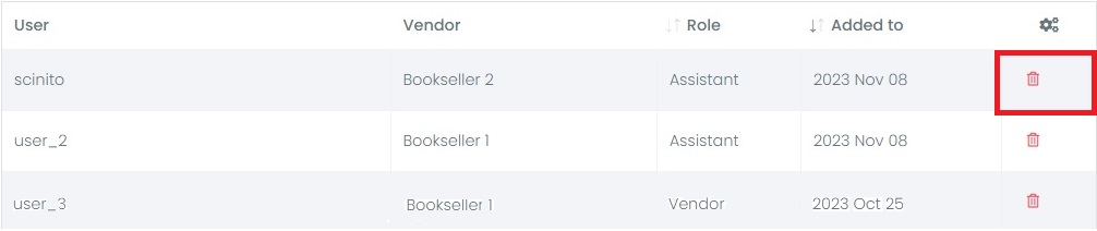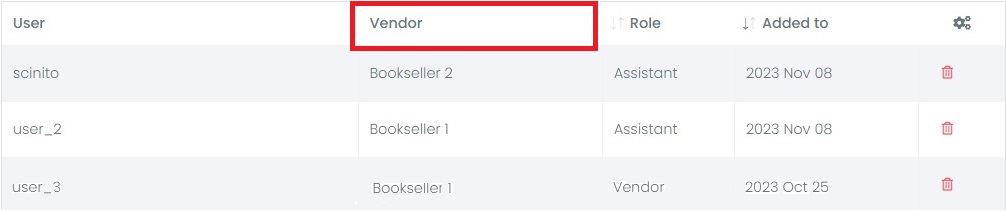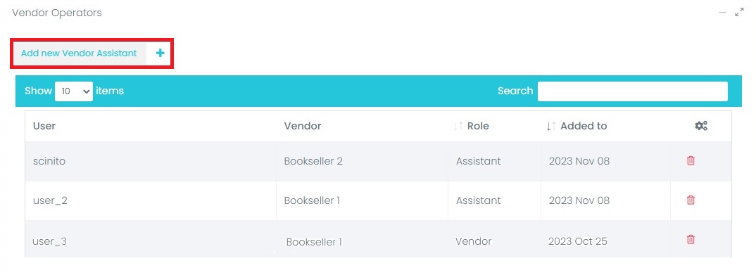 Delete Assistant: This column allows you to remove a Vendor Assistant from a
