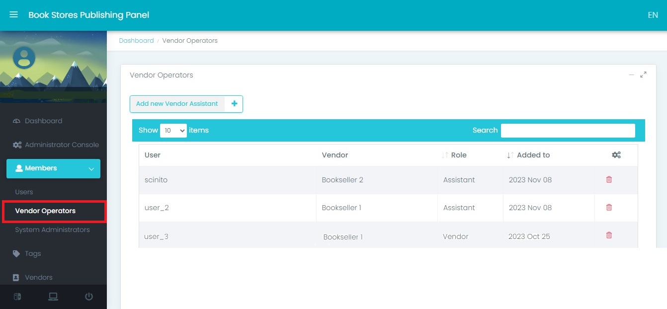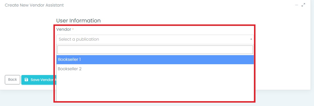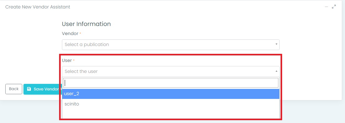 on Vendor in the Publishing Panel. Click on Vendor User tab. locate the Assistant, and in the final