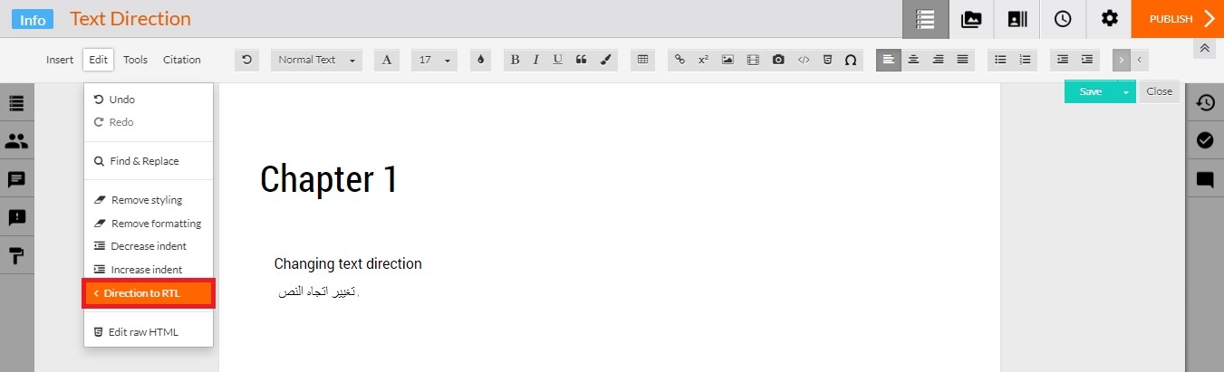 When you need to add text in a different direction than your main content, use the Insert RTL/LTR feature. This lets you easily add text in right-to-left (RTL) languages like Arabic or left-to-right (LTR) languages like English. Note: Based on the ...