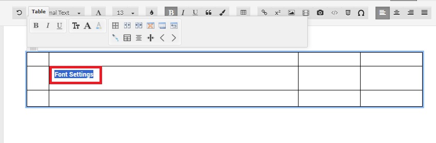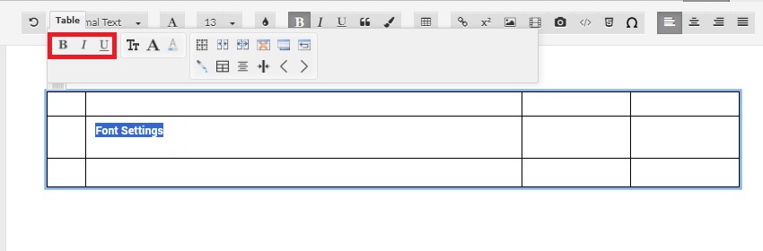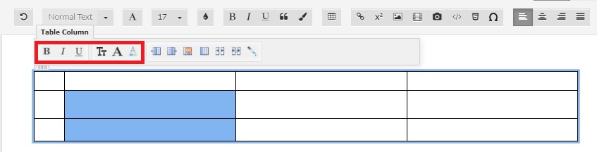 in the row menu to change the style (bold, italic, underline), size, font type,