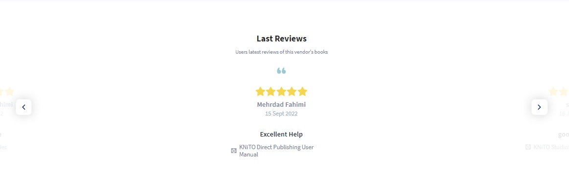 - Last Reviews: Shows recent customer reviews of the vendor's books.