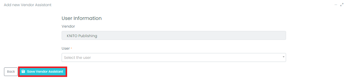 vendor in the Publishing Panel, and by clicking on the relevant options, enters