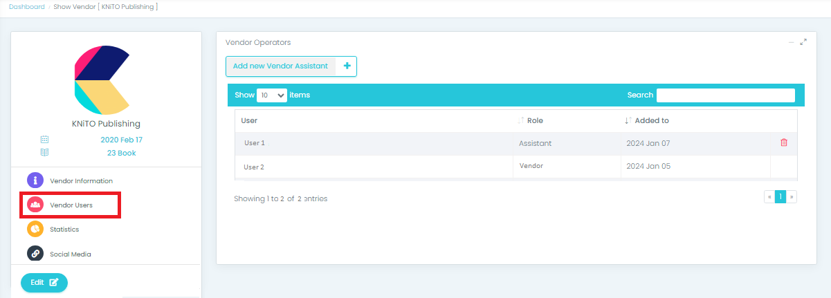 The Vendor Information page is a tool for accessing and managing vendor-related information, offering an overview of vendors and their details. Accessing the Vendor Information Page In the Publishing Panel, click on Vendors. This will take you to the ...