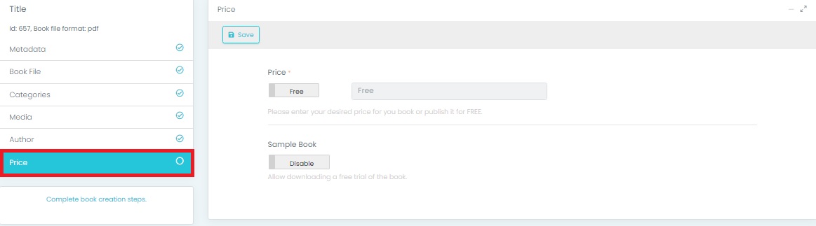 Price/Free Button: Choose whether you want to sell your book or offer it