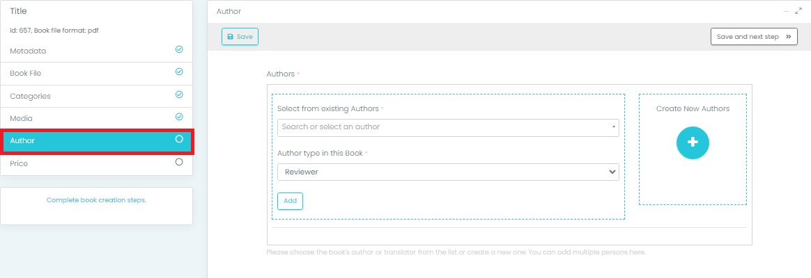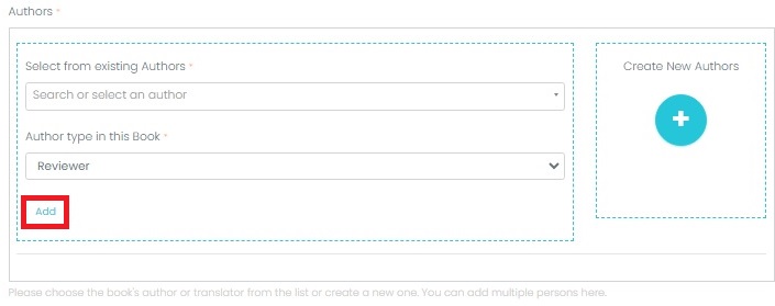Select from Existing Authors: In this field, you can search for the desired author by typing